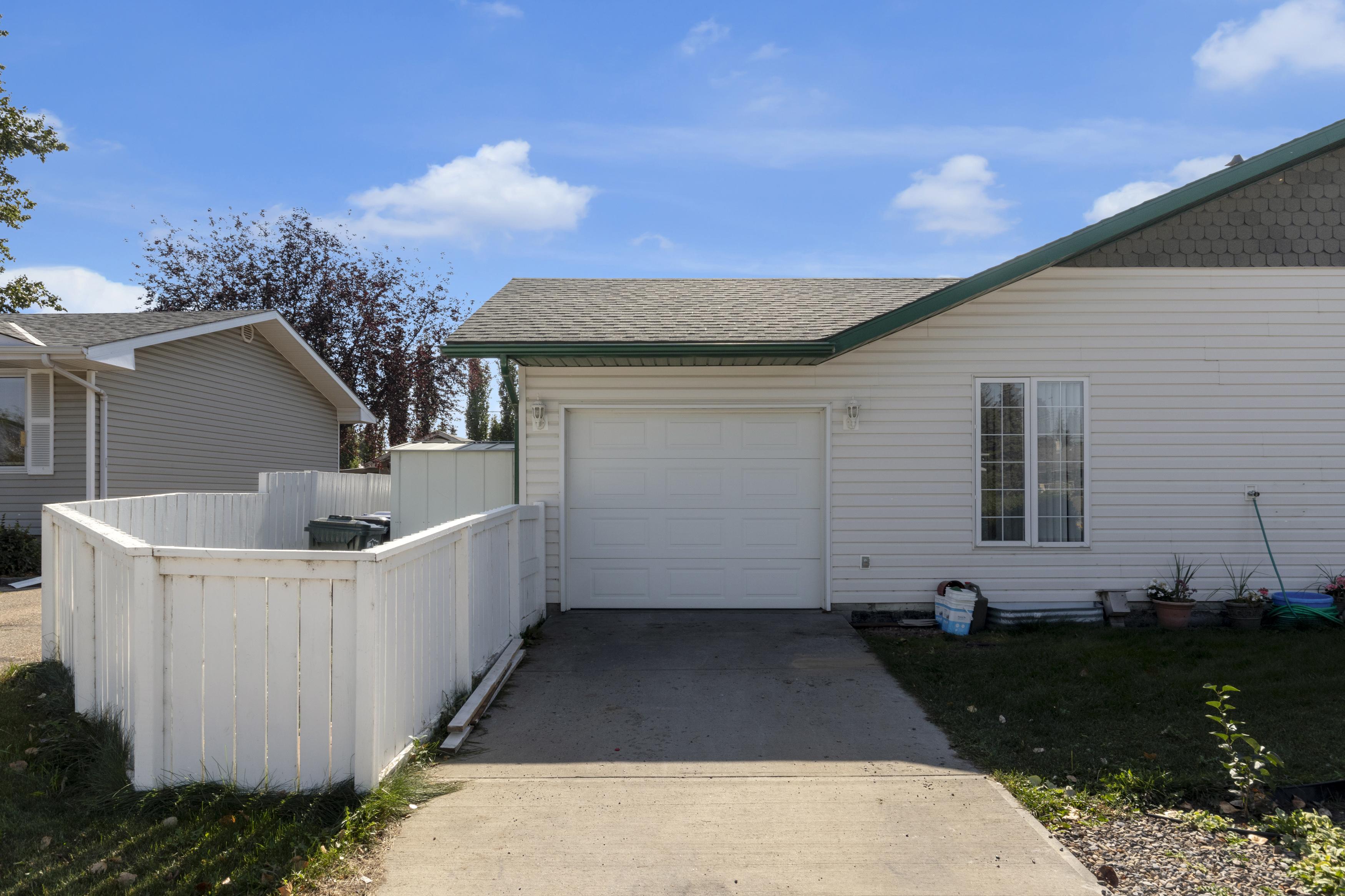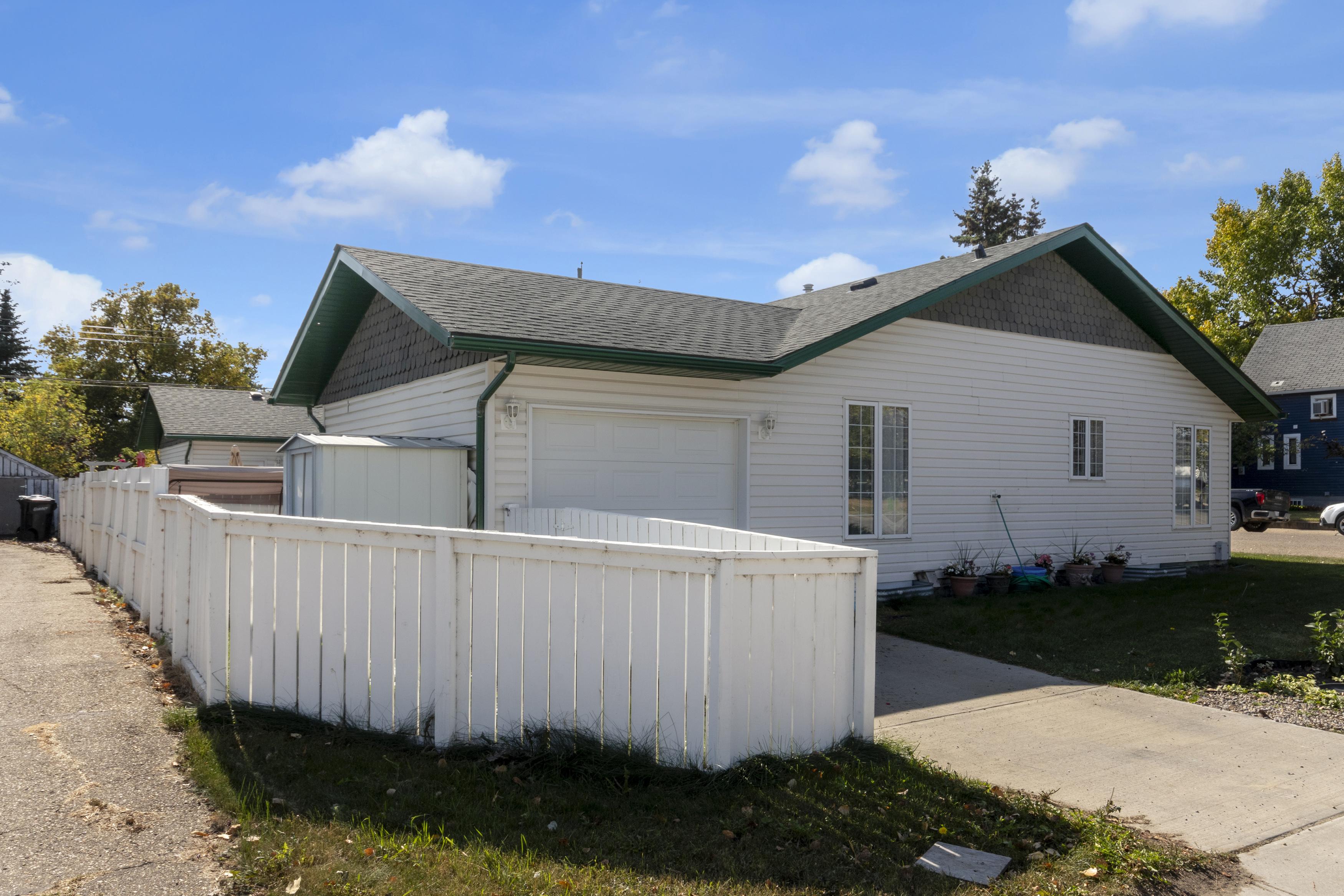 Welcome to this beautifully maintained home offering comfort, convenience, and lifestyle all in one. Perfectly situated on a large corner lot, this property is just steps from Main Street, shopping, the hospital, and all the amenities the friendly town of Didsbury has to offer. Say goodbye to condo fees and pet restrictions, this move-in ready home is ideal for Adult living, downsizers and investors. Inside, you’ll love the bright open-concept main floor with higher ceilings and an abundance of windows that fill the space with natural light. The spacious living area flows seamlessly into the dining and kitchen space, where you’ll find newer appliances (updated within the last 2 years). Thoughtful touches such as laminate flooring throughout, larger doorways, and a wheelchair-friendly design make this home both stylish and functional. The main level features 2 comfortable bedrooms, a full 4-piece bath, and the convenience of main floor laundry. Downstairs, the fully developed basement offers incredible additional living space with 2 more bedrooms, another 4-piece bath, a cozy family room, and a generous storage area. Step outside to enjoy the fully fenced yard, complete with a doggie door leading to the garage. The attached single garage includes built-in shelving and a workbench—perfect for hobbies or storage. Mature perennials and shrubs add a touch of charm to the landscaping, giving the home wonderful curb appeal. With a newer roof (redone within the last 9 years)This is a rare opportunity to own a versatile and welcoming home in a fantastic location. Don’t miss it!